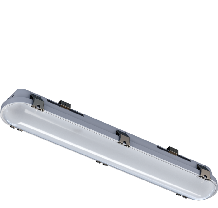 Светильник с ударопрочным корпусом из поликарбоната и опаловым рассеивателем на металлических клипсах. Оснащен клеммной колодкой и сквозной проводкой для соединения в линию. Используются светодиоды HONGLI 2835 с высоким индексом цветопередачи >90. Применение: школы, промышленные объекты, ЖКХ. Производство от 14 дней.
