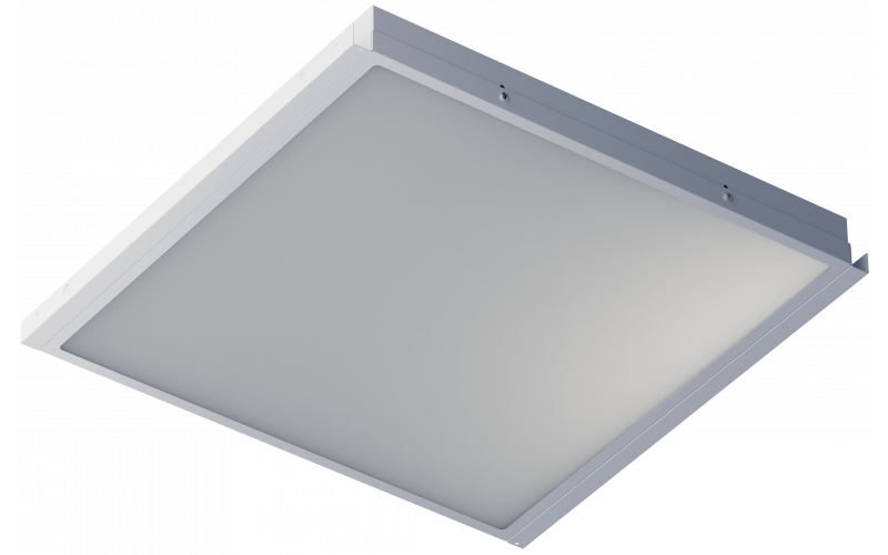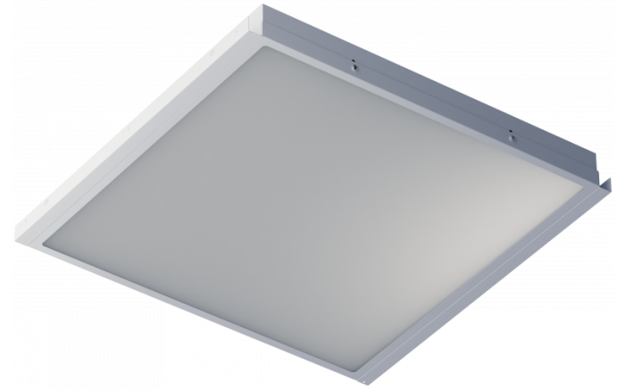 Корпус выполнен из листовой стали с белым порошковым покрытием, по периметру установлен силиконовый уплотнитель. Монтируется в потолки со скрытой системой CLIP-IN. Опаловый или призматический рассеиватель из светотехнического полимера создаёт мягкий свет. Подходит для медицинских и промышленных помещений, а также чистых зон. Оснащён блоком аварийного питания. Производство от 14 дней.