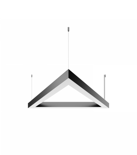 Trigon Line — треугольный подвесной светильник с чёрным металлическим корпусом и опаловым рассеивателем.