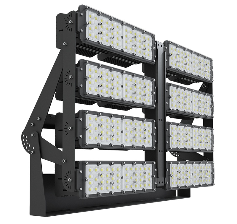 Светильник промышленный линзованный с поворотными модулями. Предназначен для освещения открытых пространств, производственных, складских, спортивных помещений, фасадов зданий. Устанавливается на несущую поверхность при помощи поворотного кронштейна (в комплекте).